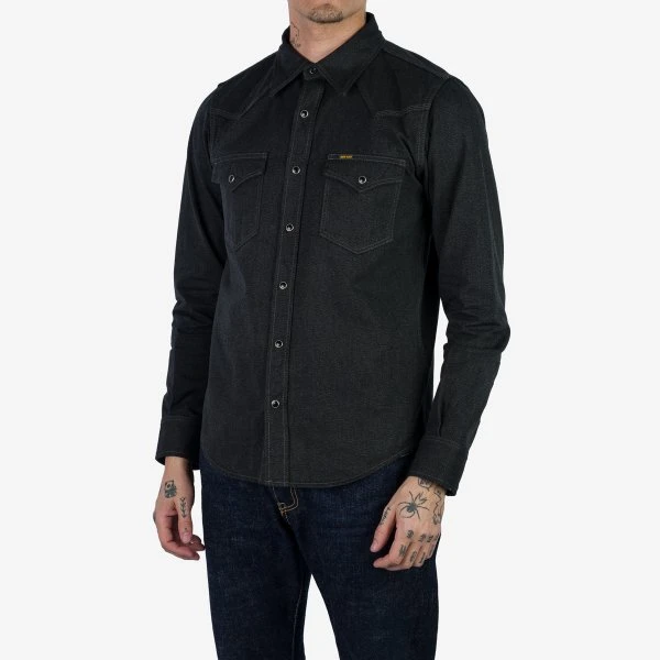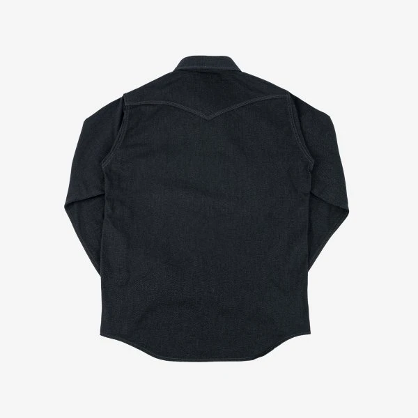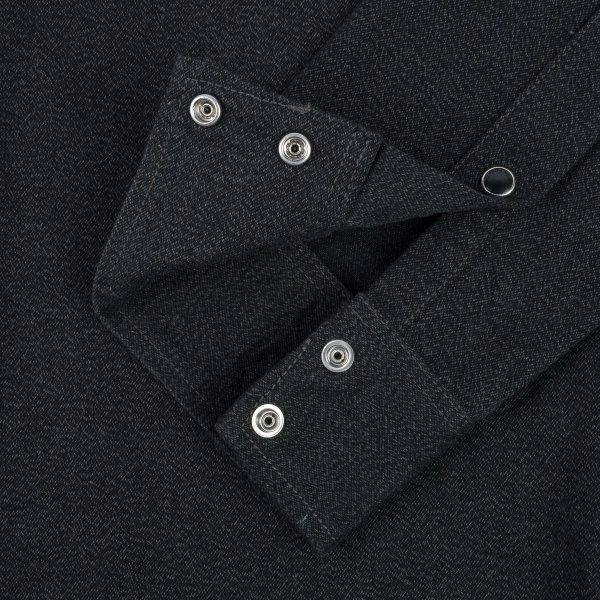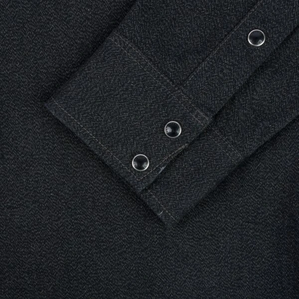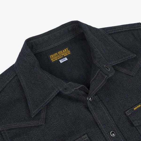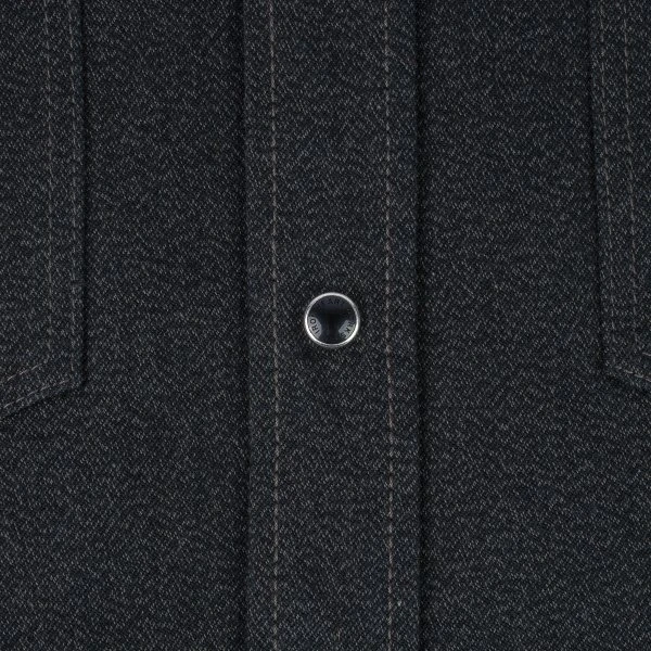 Our classic western cut, constructed from a 10oz mock twist twill. This fabric is woven with black and grey yarn, creating a beautiful heathered appearance which is full of texture and character. Finished with tonal stitching and Iron Heart branded permex snaps, this is a sleek and refined shirt with a subtly detailed style.