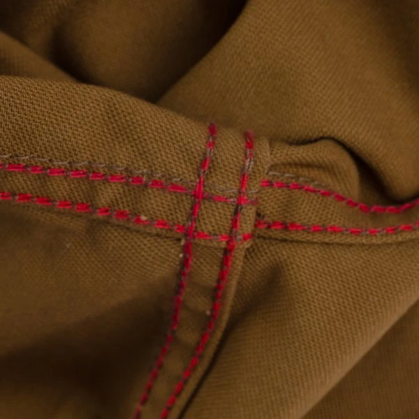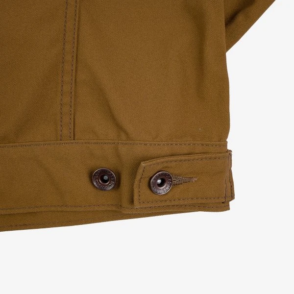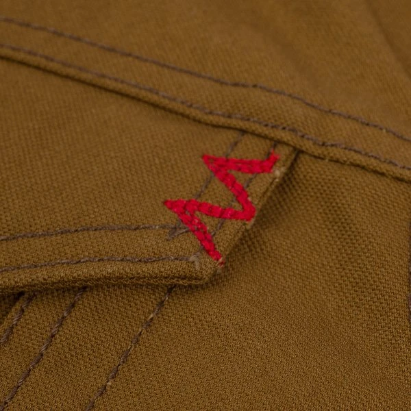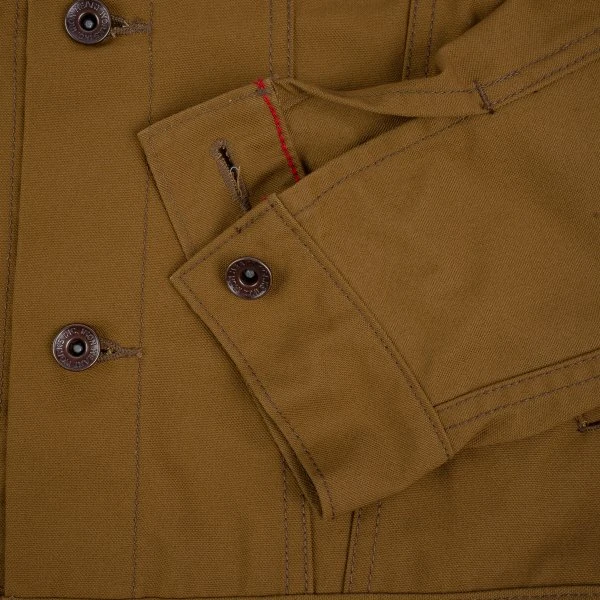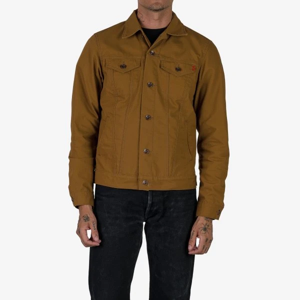 Our modified take on the classic Type III trucker jacket – offering a slightly longer than traditional body, with the addition of side handwarmer pockets – made from 10oz tetoron cotton Japanese duck canvas. Woven from a 65/35 poly-cotton blend, the warp and weft yarns have been aggressively twisted to create a crisp, tight weave which is both lightweight and very durable. The yarns of the fabric are reactive dyed, meaning they’ll retain their colour and won’t fade over time.