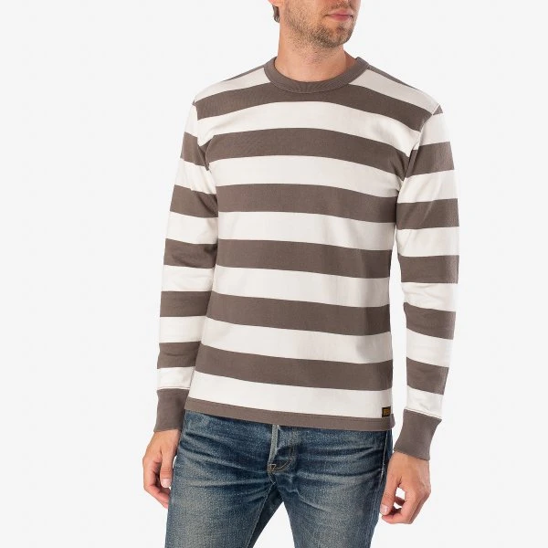 Heavyweight long-sleeved knitted cotton sweater with statement stripes. One-washed to minimize/eliminate shrinkage. So heavy, it’s almost rude to call it βjustβ a sweater.
