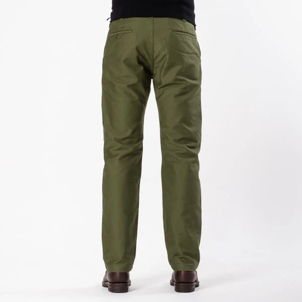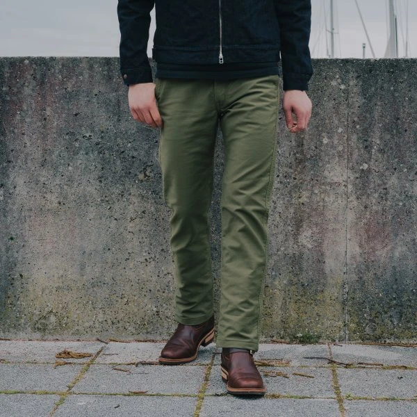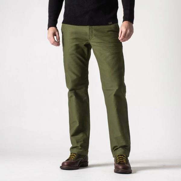 Our original work pants cut, constructed from 11oz cotton whipcord. Often utilised in military wear, the tightly woven cotton twill of whipcord is renowned for its hardwearing properties, offering excellent scratch and wind resistance. Lightweight and durable, these straight cut, medium rise pants feature a four-pocket design, with heavy-duty design elements including reinforced belt loops, a Universal zipper fly and an oversized snap fastening rear pocket.