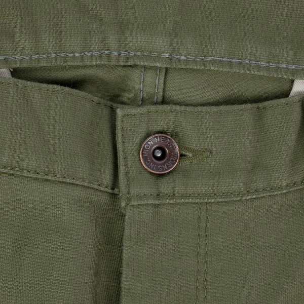 - Oversized Iron Heart branded copper snap fastening on left-rear pocket
