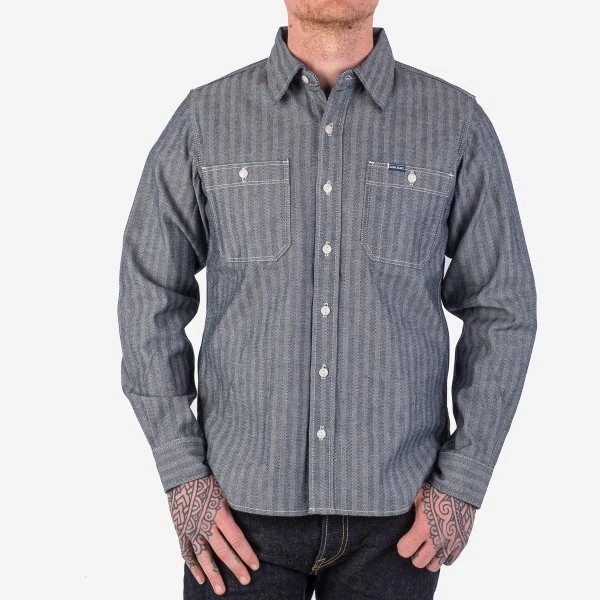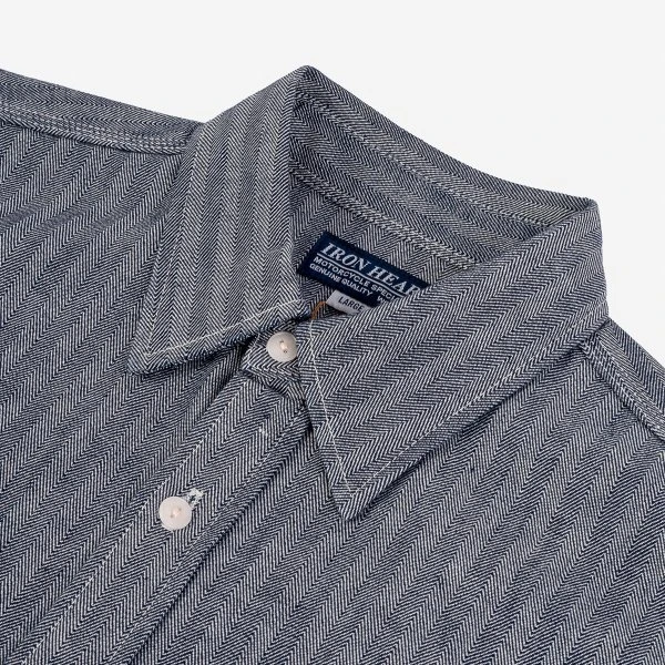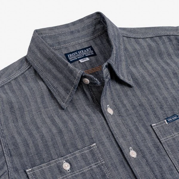 Our classic work shirt silhouette in a 12oz indigo herringbone. Without doubt, an Iron Heart staple that will age beautifully over time with wear.