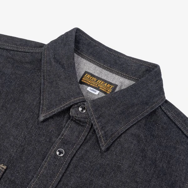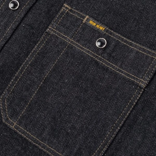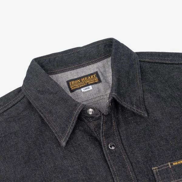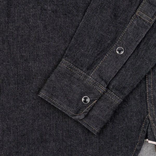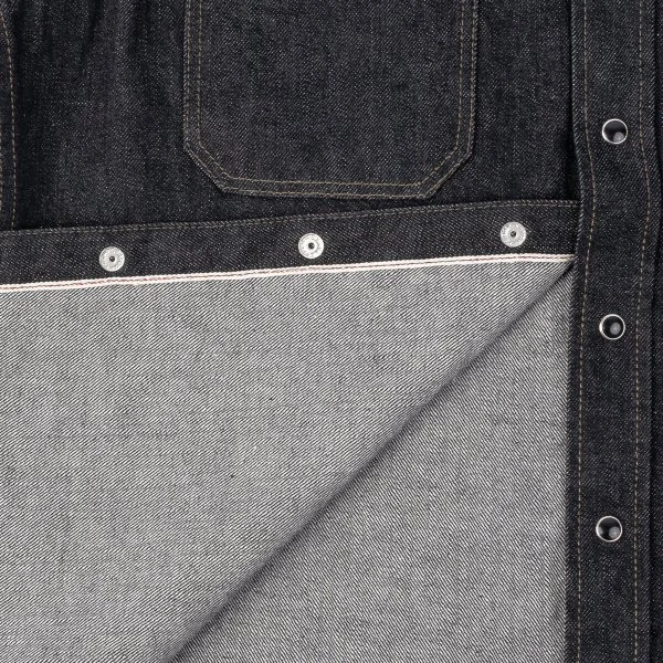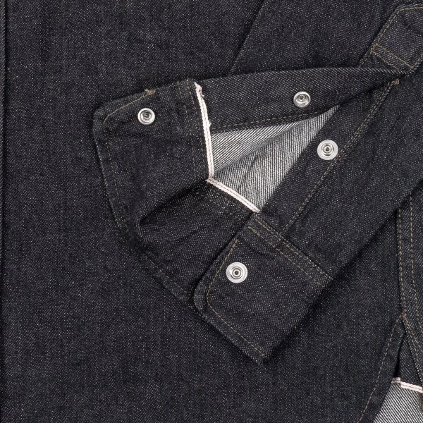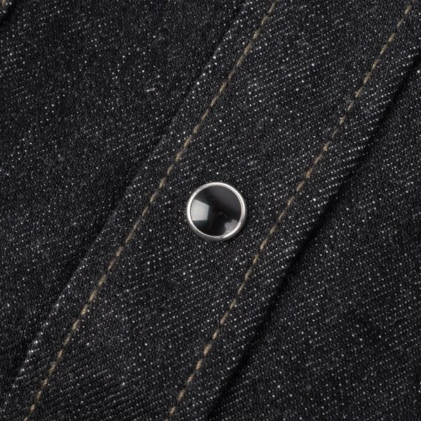 Our classic work shirt cut in a 12oz black sulphur dyed warp and cream weft Japanese selvedge denim. The denim will fade very slowly over time, developing profound character, ensuring this shirt will stay looking fantastic with lots of age and wear. This time around we’ve added our black permex snaps for secure closure.