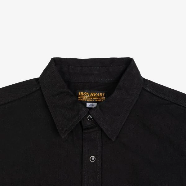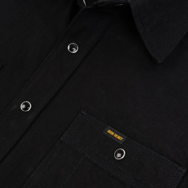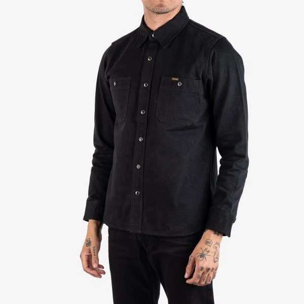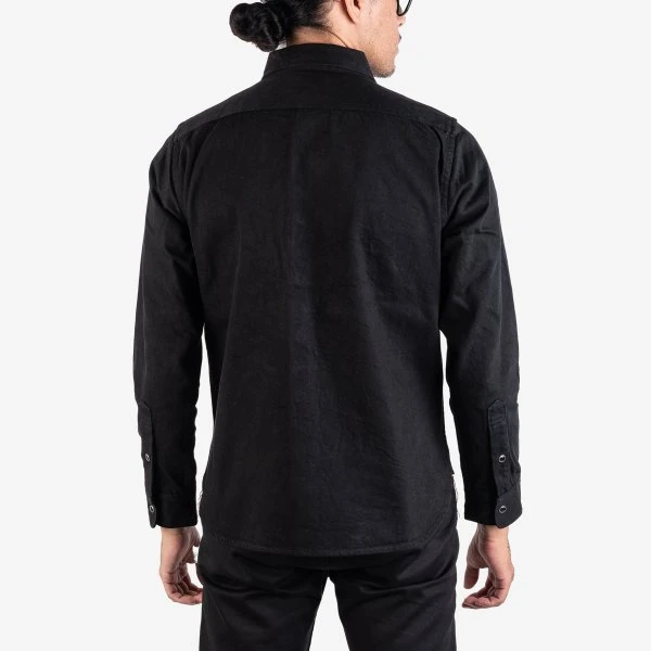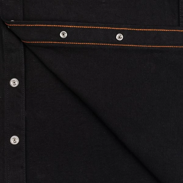 Our classic work shirt cut in our 12oz black selvedge denim, the same fabric we use on our much loved “Johnny Cash” western shirt. The denim has both a reactively dyed warp and weft meaning that the shirt will retain its stealth look through wear and washing. Finished with our black permex snaps for secure closure.
