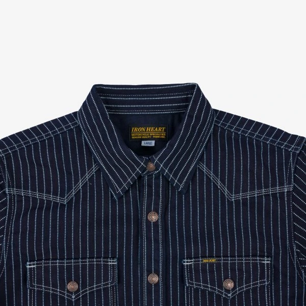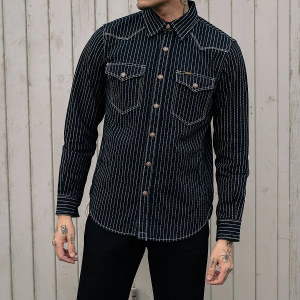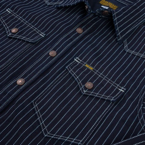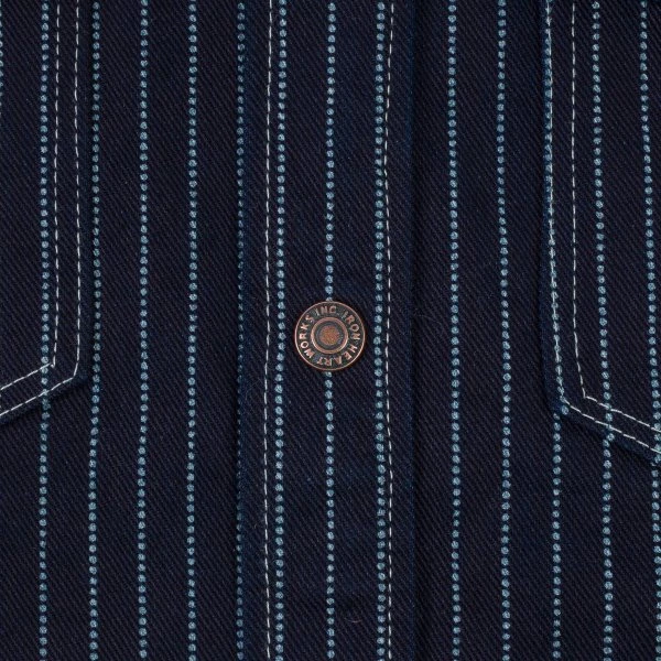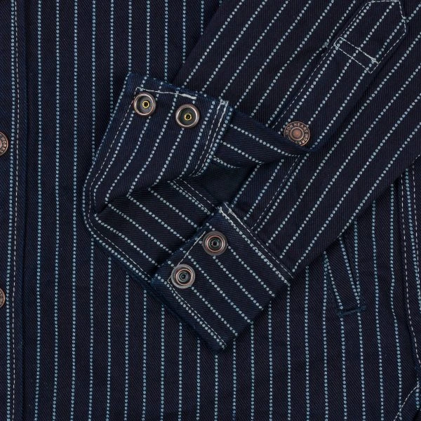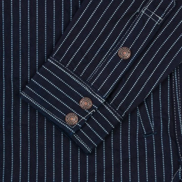 We love our CPO style shirt pattern, so we found little reason not to make it out of our 12oz indigo wabash fabric. Featuring indigo rope dyed warp and weft yarns, you can expect the shirt to age beautifully. The dots are bleached in to the fabric post weave so will remain prominent as the indigo fades around it.
