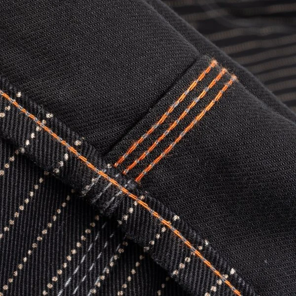 - Rope dyed 12oz black sulphur warp and weft with bleached dots which makes for a wonderful black Japanese wabash