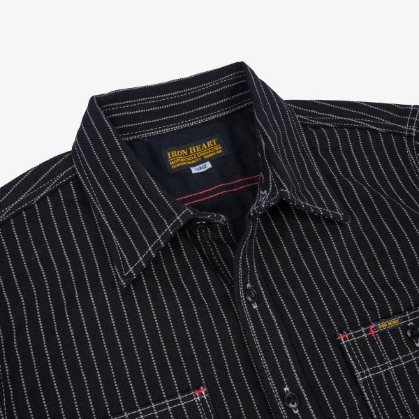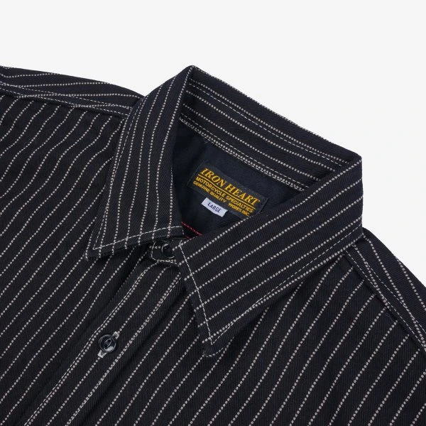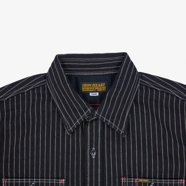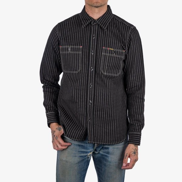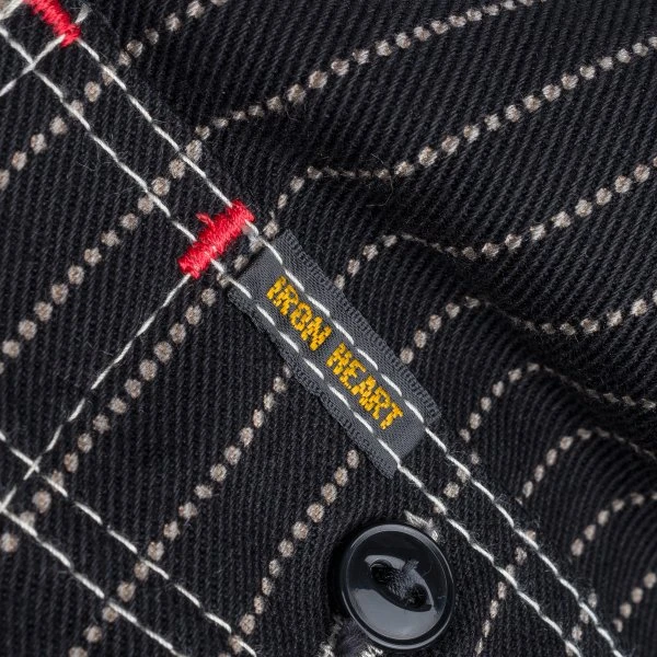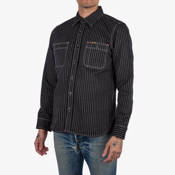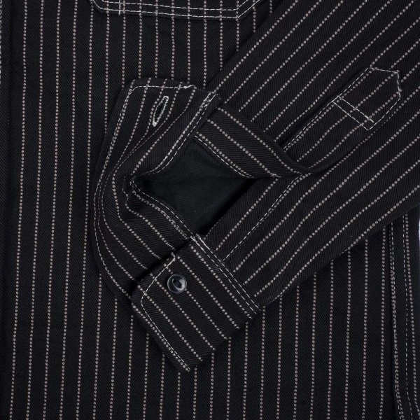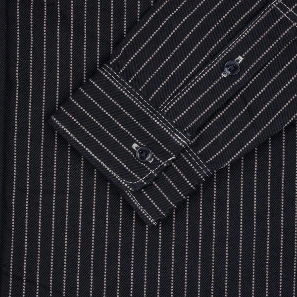 Our classic work cut shirt made from a 12oz black wabash fabric with black buttons, the weft and the warp are both rope dyed black and the dots are bleached into the fabric post-weave. This shirt will fade and age beautifully.