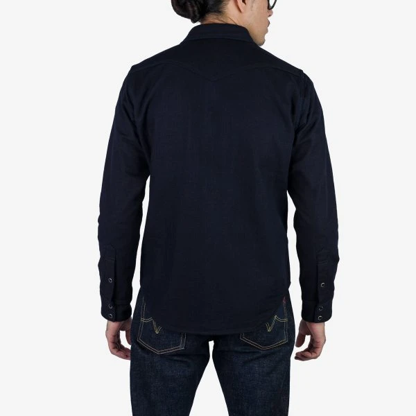 Upon first glance, this classic western cut could easily be mistaken for a lined shirt. But, in fact it’s constructed from a double weave cloth. Producing double weave cloth is a complex process which involves intricately weaving two separate sets of warps and wefts on the same loom, to create a fabric with two distinct faces.