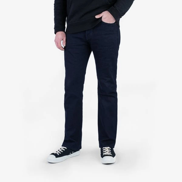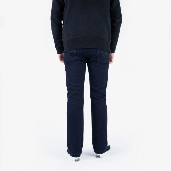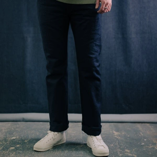 Our slim straight cut jeans, made from 14oz selvedge denim where both the warp and the weft (which is usually undyed) have been rope dyed indigo. Constructed with navy tonal stitching.