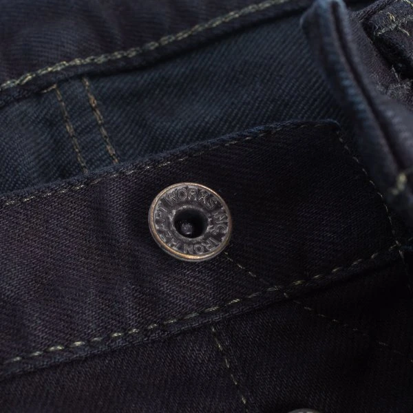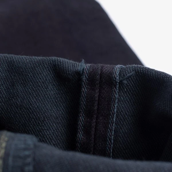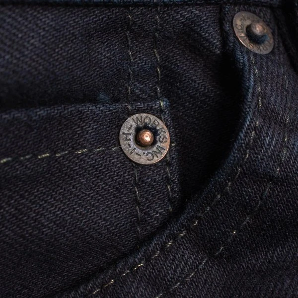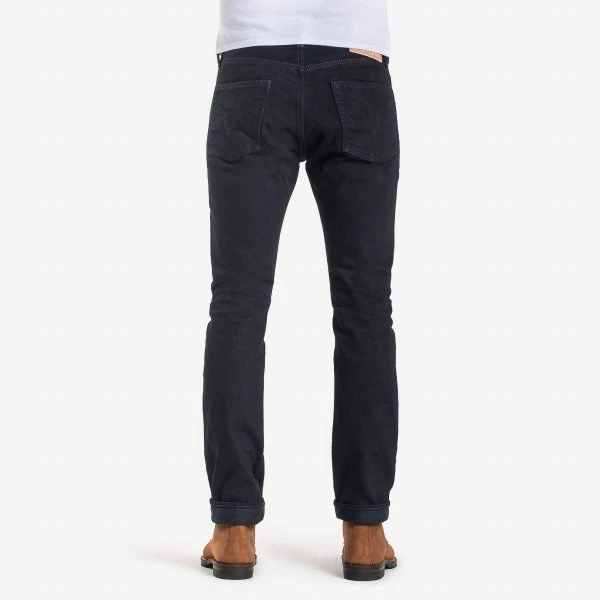 Our medium/high rise super-slim cut jean in black overdyed 14oz indigo selvedge denim. This updated denim (second version) is made with a double twisted weft yarn (the same construction technique as our 21oz selvedge denim). Overdyed in black so it will fade with time and wear. At 14oz, this is the “least heavy” Japanese denim we use for jeans or jackets.