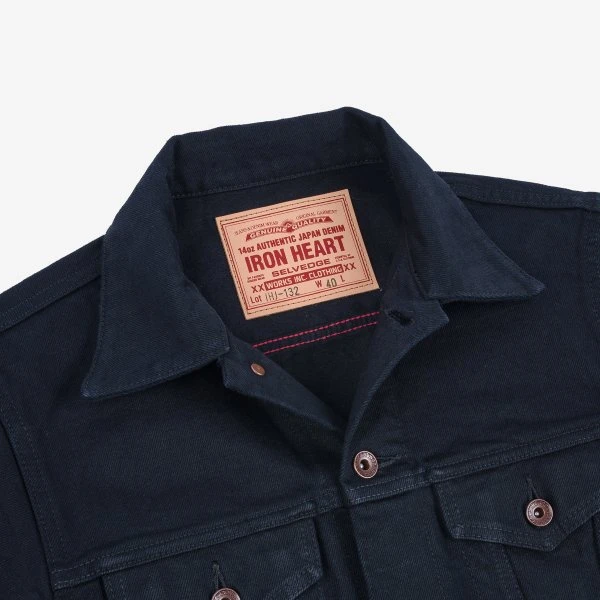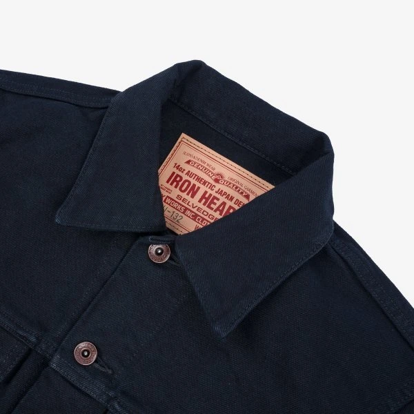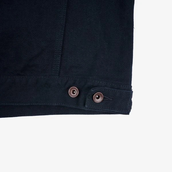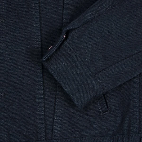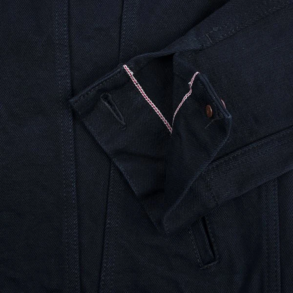 Our modified take on the classic Type III trucker jacket – offering a slightly longer than traditional body, with the addition of side handwarmer pockets – made from 14oz selvedge ‘superblack’ Japanese denim. As both the warp and the weft of this denim are reactive dyed, they will retain their deep black tone and won’t fade over time.