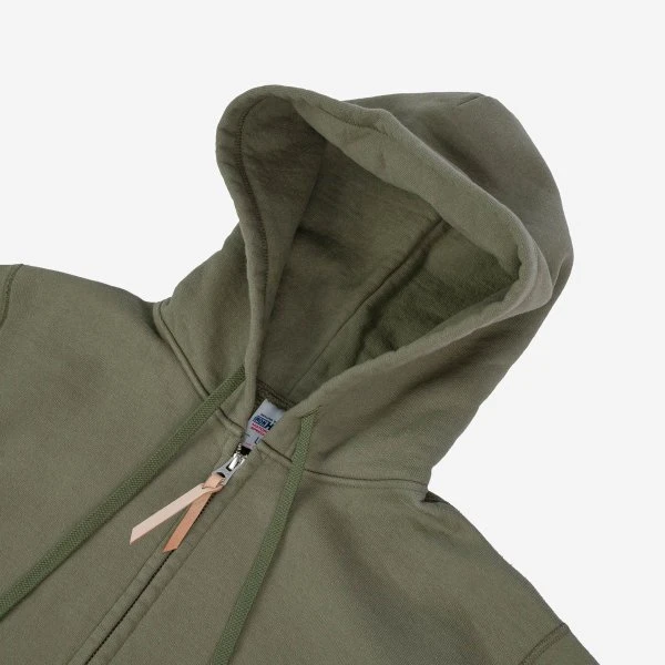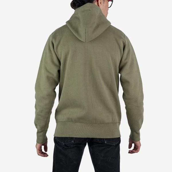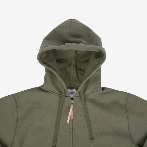 The ultra heavy loopwheel fleece we use for all of our sweatshirts is woven in Wakayama and weighs in at a massive 14oz. This Hoodie is super windproof and is constructed using four needle Union Special flat stitched seams. Finished with front pouch pockets, a 2-way Universal zipper, and adjustable hood.