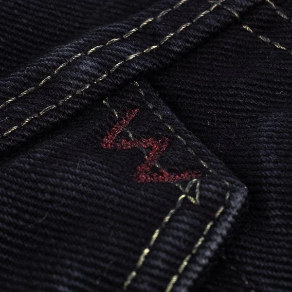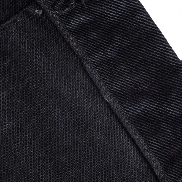 - 19oz indigo Japanese selvedge left-hand twill denim, overdyed black