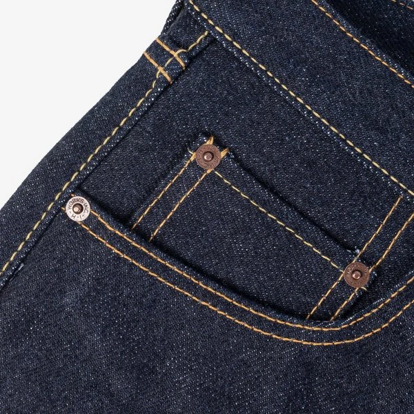 Our modern slim cut with more taper from knee to hem than most of our jeans, allowing you to show off more of your footwear, constructed from our 21/23oz UHR denim. UHR is an acronym for “Ultra Heavy Raw”, an unsanforised and loomstate fabric, UHR denim fabric starts at 21oz, and becomes (approximately) 23oz after shrinkage. The UHR enjoys virtually legendary status amongst aficionados and fans of the brand, due to its fading potential, and the density of the weave.