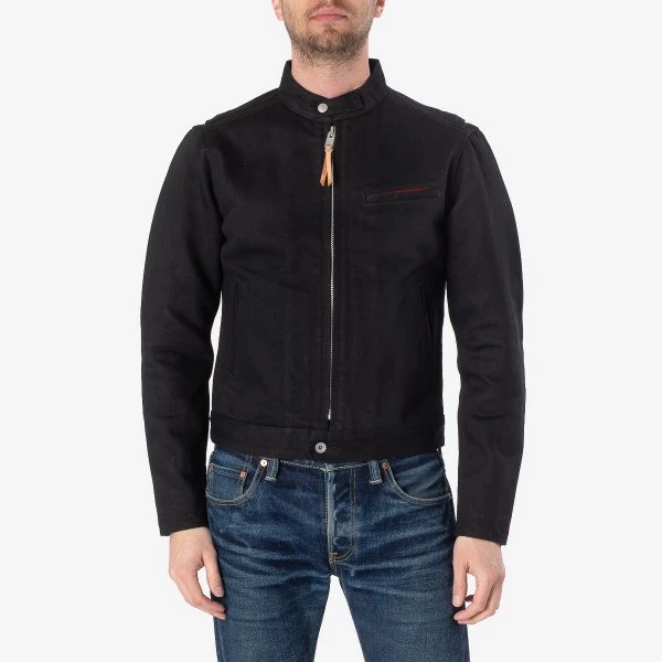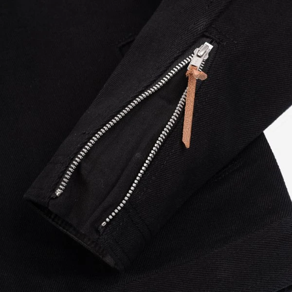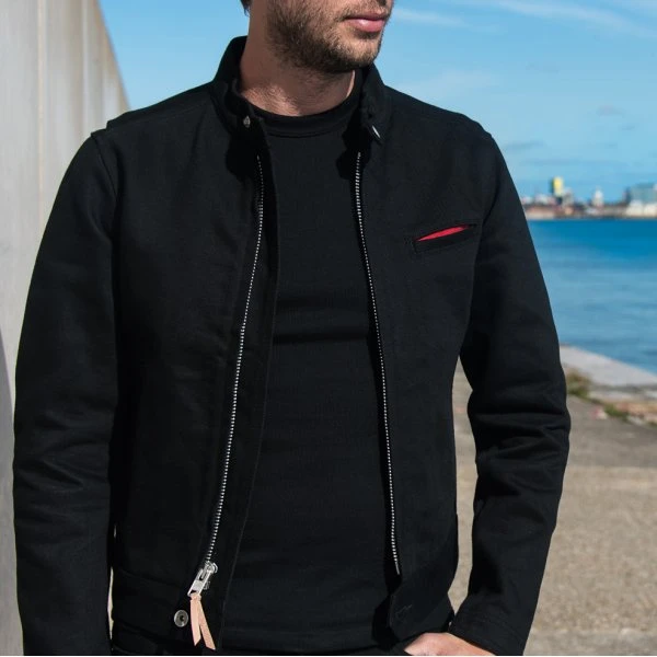 Our traditional rider’s jacket, constructed from 21oz ‘Superblack’ non-fade Japanese denim. Designed for a streamlined fit to increase wind resistance – this cut features zippered cuffs, a snap fastening collar and a tack button secured hem, with action bi-swing shoulders for increased manoeuvrability.