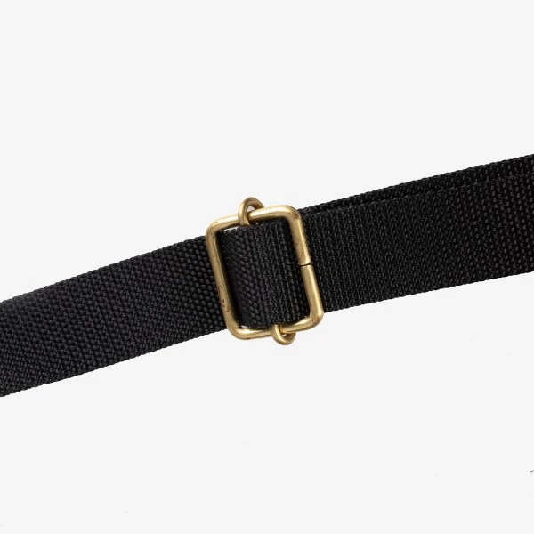 - 1″ flat nylon adjustable shoulder strap, with brass rivets where strap attaches to bag gusset