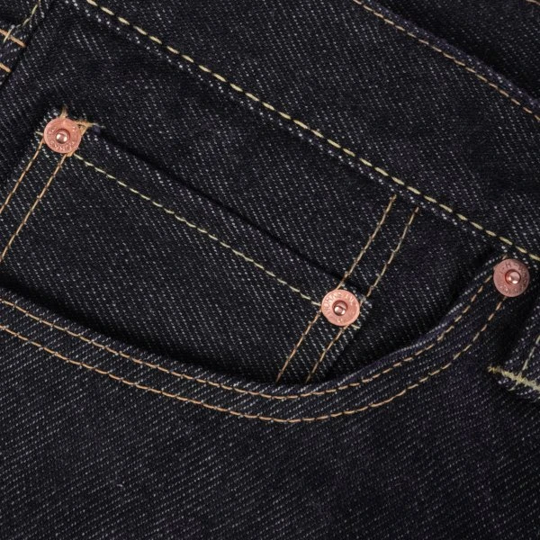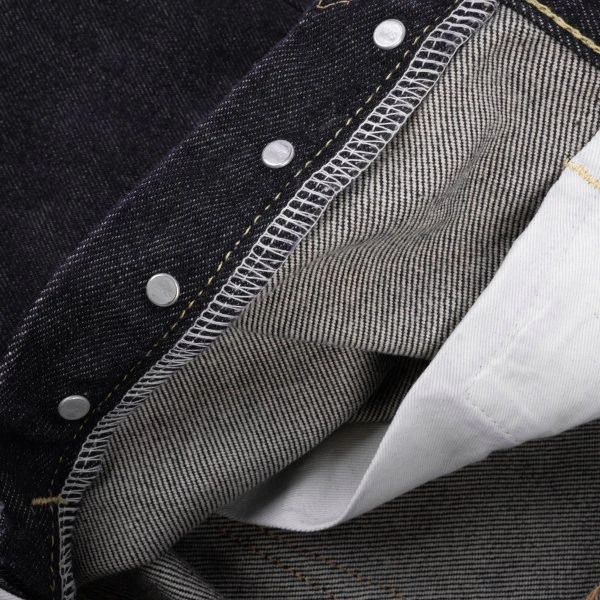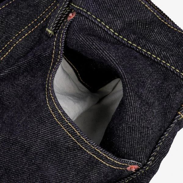 - 21oz rope dyed indigo warp, natural weft Japanese selvedge denim