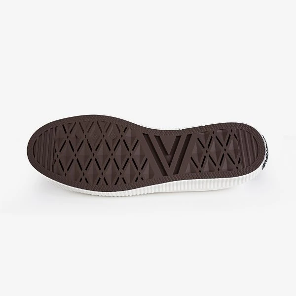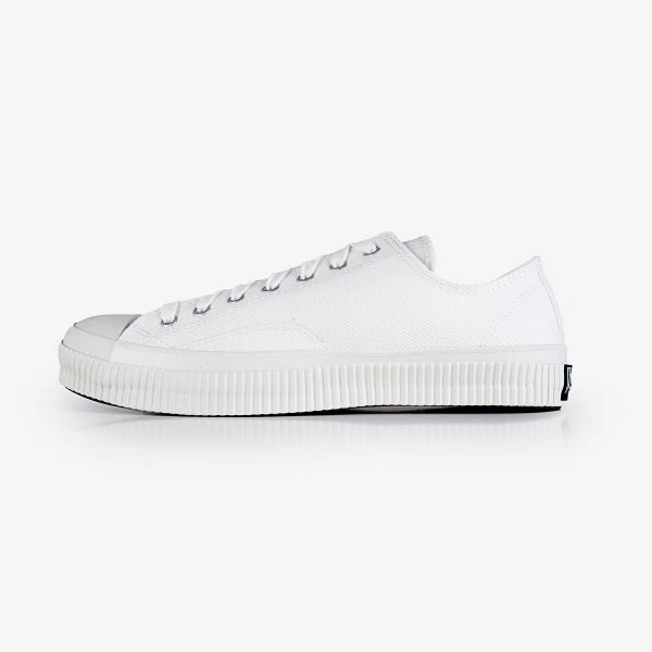 Our low top sneakers feature uppers made from our 21oz selvedge denim and are kiln-fire vulcanized at the legendary Moonstar factory in Kurume, one of only three remaining factories in Japan that are able to undertake this method of production. The vulcanization process involves heating the rubber in a kiln and then adding sulphur to manipulate the chemical elements of the rubber.