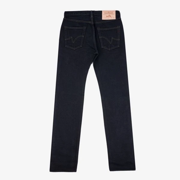 Our medium/high rise, relaxed tapered cut jeans, constructed from 21oz overdyed indigo selvedge denim. To create this darkened variation, we take a pair of standard IH-888S-21 jeans and steep the entire garment in black dye using a direct dyeing process. This stains the indigo denim and stitching, with the added bonus of removing all shrinkage from the fabric. A unique middle ground between our traditional indigo and black denims, over time the fabric will gradually fade with blue-tinged hues in high-wear areas.