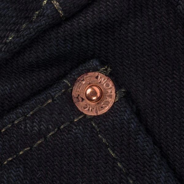 Please note that previous versions of these jeans were overdyed using sulphur dye. Due to the environmental impact of sulphur dyes, we have decided to switch to a direct dyeing process when overdyeing our heavyweight denims. The only noticeable difference is that this new process does not oxidise the brass hardware as previously. You can still expect these jeans to age and fade similarly to older models.