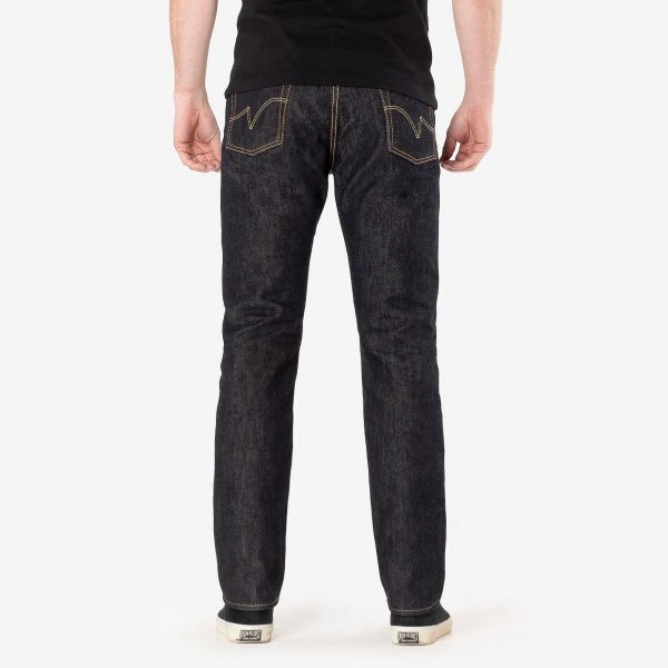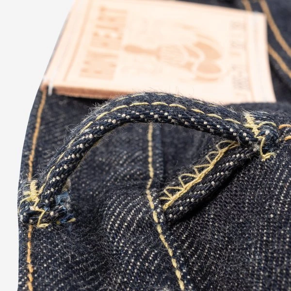 - 21oz rope dyed indigo warp, natural weft Japanese selvedge denim