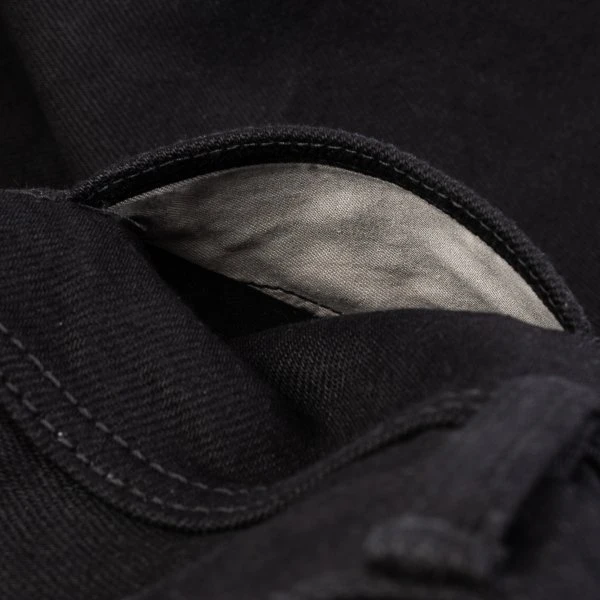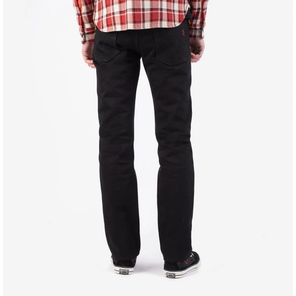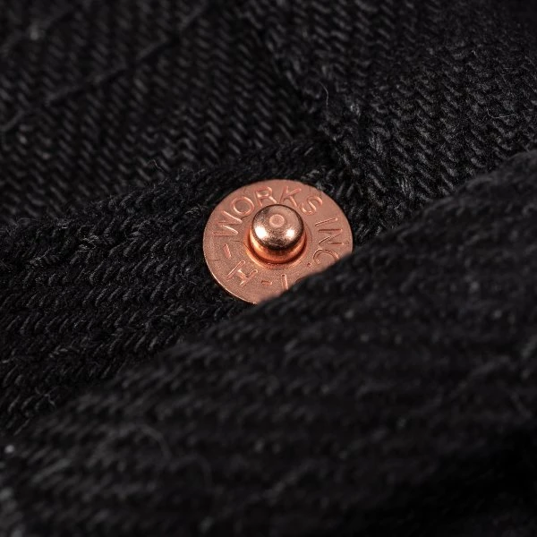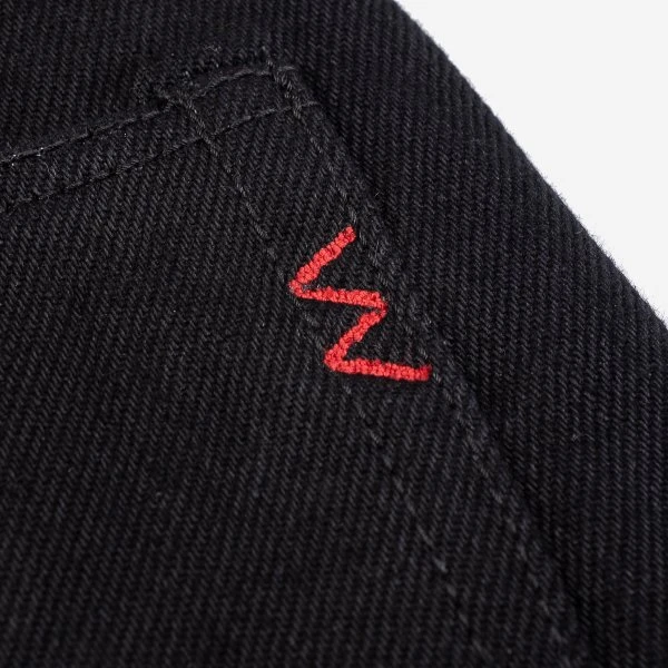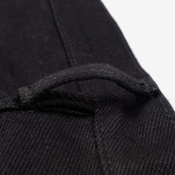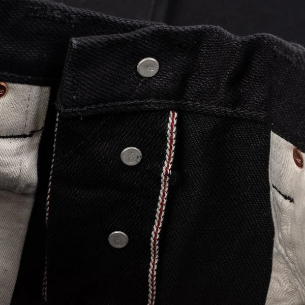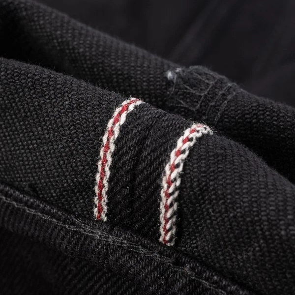 Our slim straight cut jean, made out of 21oz “Super Black Fades to Grey” (SBG) selvedge denim. This denim has a black sulphur dyed warp and a black reactive dyed weft. With time the warp will fade but the weft won’t. It is heavy, tough, yet soft and extremely breathable. Because of the double twisted weft construction, this denim moulds to an individual’s body shape like no other denim.