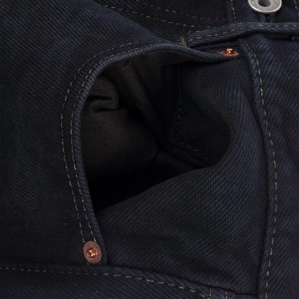 Please note that previous versions of these jeans were overdyed using sulphur dye. Due to the environmental impact of sulphur dyes, we have decided to switch to a direct dyeing process when overdyeing our heavyweight denims. The only noticeable difference is that this new process does not oxidise the brass hardware as previously. You can still expect these jeans to age and fade similarly to older models.