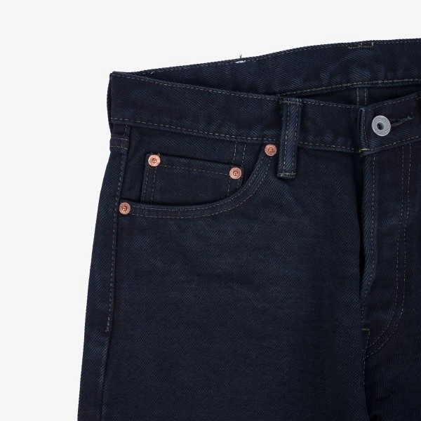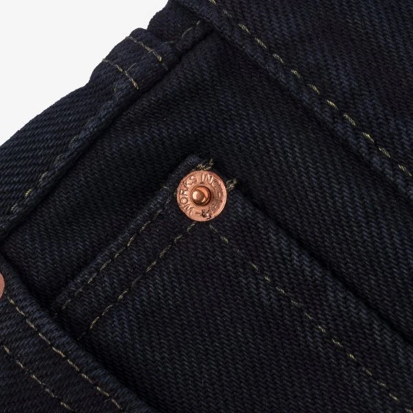 Our medium rise, straight cut jeans, constructed from 21oz overdyed indigo selvedge denim. To create this darkened variation, we take a pair of standard IH-634S jeans and steep the entire garment in black dye using a direct dyeing process. This stains the indigo denim and stitching, with the added bonus of removing all shrinkage from the fabric. A unique middle ground between our traditional indigo and black denims, over time the fabric will gradually fade with blue-tinged hues in high-wear areas.