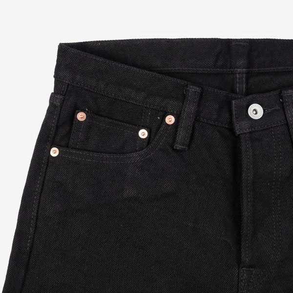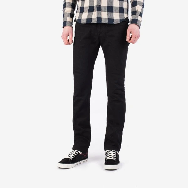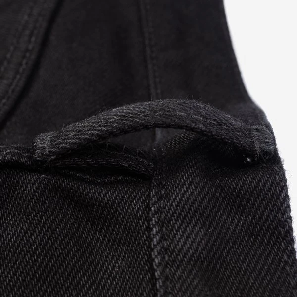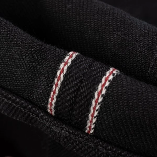 Our super slim cut jean, made out of 21oz “Super Black Fades to Grey” (SBG) selvedge denim. This denim has a black sulphur dyed warp and a black reactive dyed weft. With time the warp will fade but the weft won’t. It is heavy, tough, yet soft and extremely breathable. Because of the double twisted weft construction, this denim moulds to an individual’s body shape like no other denim.