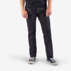 Our high rise relaxed tapered cut jean in our indigo 25oz denim. Woven with an indigo rope-dyed warp and a natural weft, this ultra heavy denim is at the limit of what can be made. Super-stiff when new and requires some “breaking-in”- with time and wear it becomes soft, pliable and very comfy.
