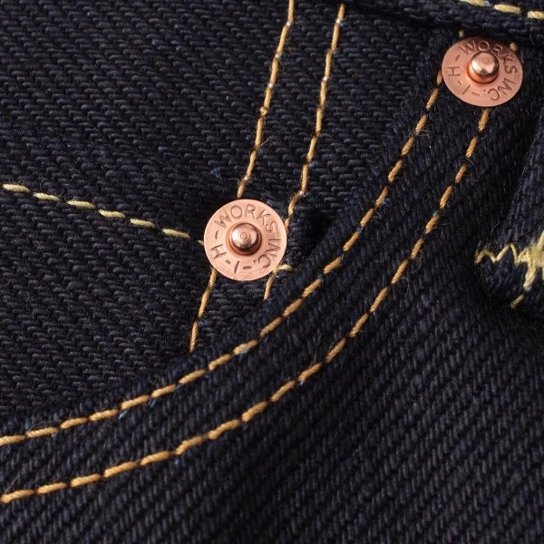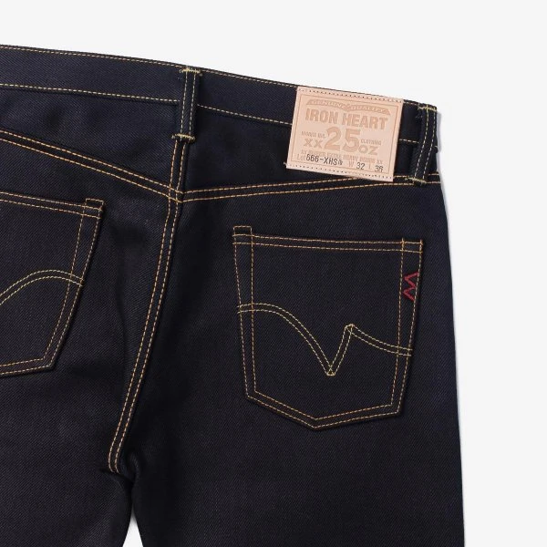 - 25oz indigo warp (that will fade) and a reactive dyed black weft (that won’t fade)