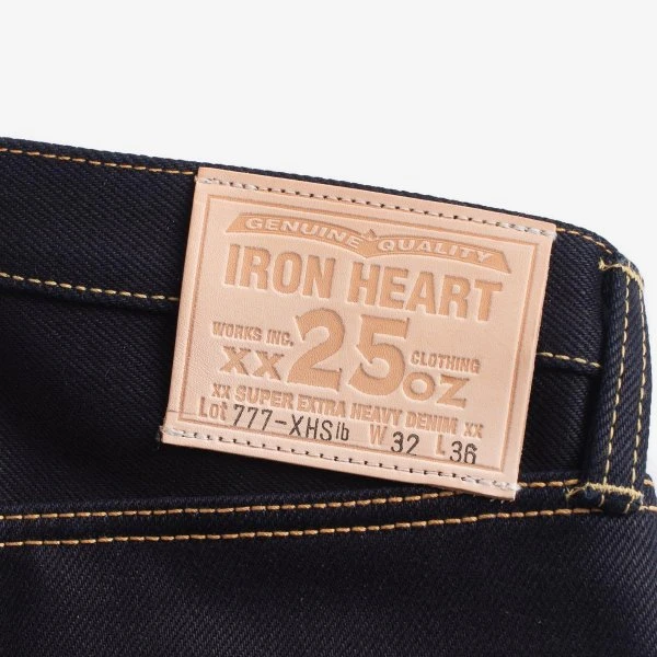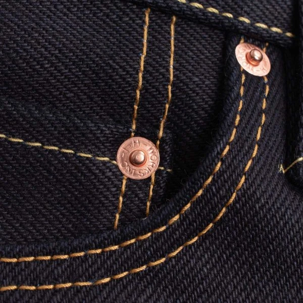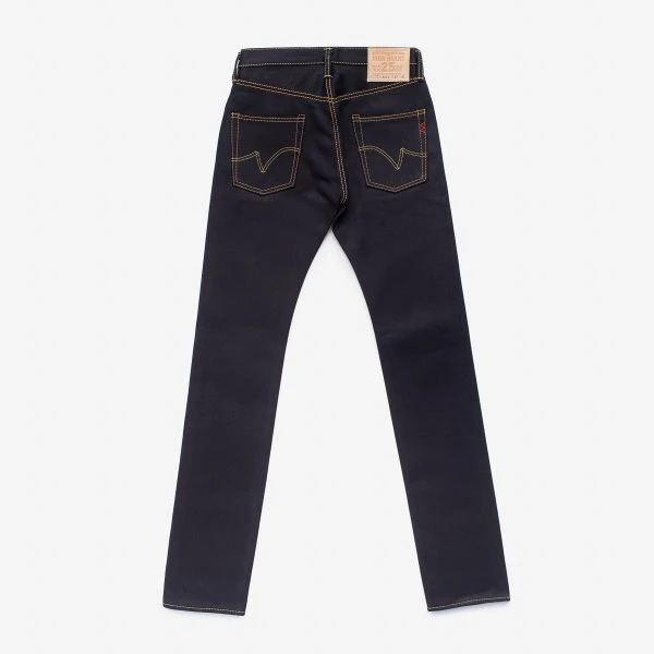 Modern slim cut jeans in our indigo/black XHS (extra heavy selvedge) 25oz denim. This ultra heavy denim is at the limit of what can be made and is not for the faint of heart. Super-stiff when new and requires some “breaking-in”- with time and wear it becomes soft, pliable and very comfy. Woven with an indigo warp (that will fade) and a reactive dyed black weft (that won’t fade).