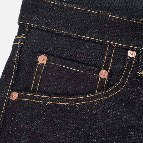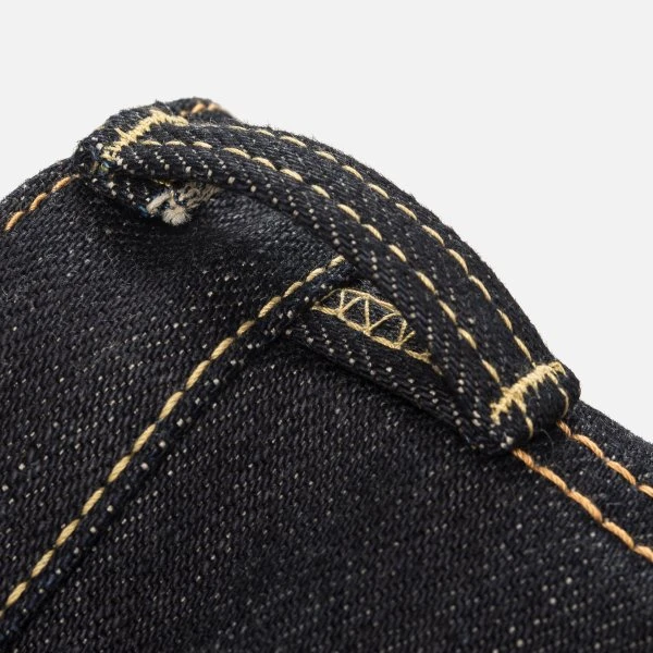 Modern slim cut jeans, constructed from our 25oz indigo denim. This ultra heavy denim is at the limit of what can be made and is not for the faint of heart. Super-stiff when new and requires some “breaking-in”- with time and wear it becomes soft, pliable and very comfy. Woven with an indigo rope-dyed warp and a natural weft.