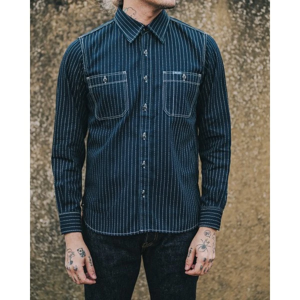 A lightweight Wabash work shirt for every season. Constructed from 6oz 100% cotton where both the warp and weft have been indigo rope dyed and the dots are bleached into the fabric post-weave.