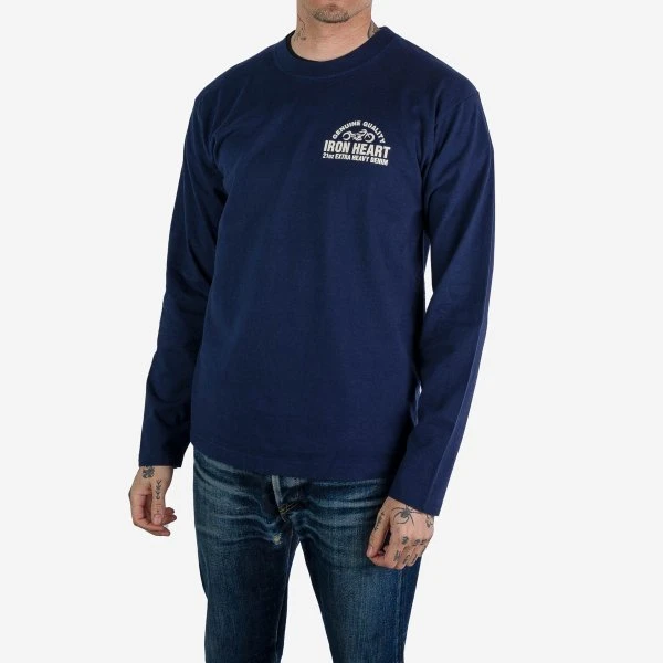 Our 7.5oz loopwheel cotton long-sleeved t-shirt, finished with “Motorcycle” logo prints. Made from 100% cotton, the loopwheeled fabric is knitted on vintage “tsuriam-ki” machines in Wakayama, Japan – one of only two factories in the world still manufacturing authentic loopwheel cloth. This low-tension, circular knitting technique produces very soft, tubular pieces of fabric, allowing for a garment to be constructed without any side seams. Each T-shirt is then cut, sewn and printed in the historic Shitamachi (“Old Town”) district of Tokyo.