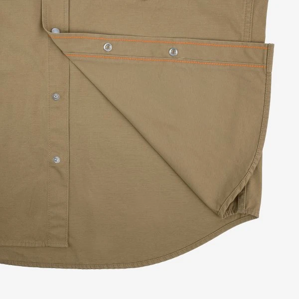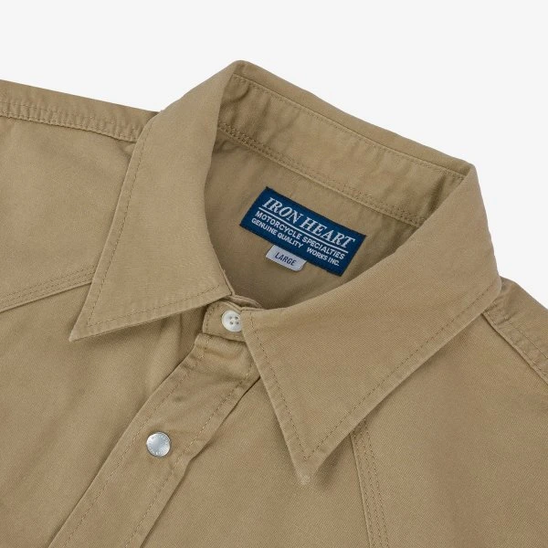 Our short sleeved western shirt cut, made from 7oz cotton poplin fatigue cloth. ‘Fatigues’ or ‘battledress’ were originally worn by military personnel as a more practical alternative to heavy and restrictive formal dress uniforms. Developed to be lightweight and breathable, fatigue cloth allowed for more freedom of movement in the combat field, while still offering the durability required for the rigours of army life. Inspired by these vintage fabrics, our 7oz weave is an ideal utilitarian choice for a summer shirt – both lightweight and hardwearing with a classic heritage appearance.
