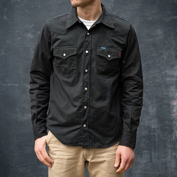 Our classic western shirt cut, made from 7oz cotton poplin fatigue cloth. ‘Fatigues’ or ‘battledress’ were originally worn by military personnel as a more practical alternative to heavy and restrictive formal dress uniforms. Developed to be lightweight and breathable, fatigue cloth allowed for more freedom of movement in the combat field, while still offering the durability required for the rigours of army life. Inspired by these vintage fabrics, our 7oz weave is an ideal utilitarian choice for a summer shirt – both lightweight and hardwearing with a classic heritage appearance.