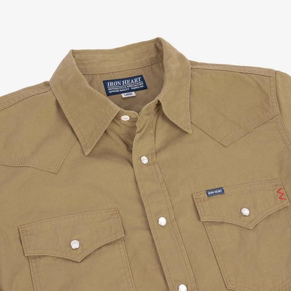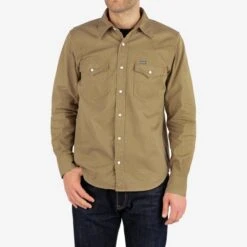 Our classic western shirt cut, made from 7oz cotton poplin fatigue cloth. ‘Fatigues’ or ‘battledress’ were originally worn by military personnel as a more practical alternative to heavy and restrictive formal dress uniforms. Developed to be lightweight and breathable, fatigue cloth allowed for more freedom of movement in the combat field, while still offering the durability required for the rigours of army life. Inspired by these vintage fabrics, our 7oz weave is an ideal utilitarian choice for a summer shirt – both lightweight and hardwearing with a classic heritage appearance.