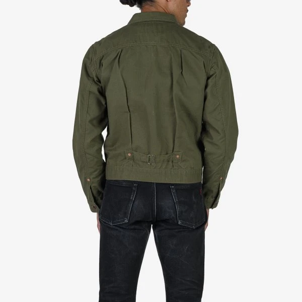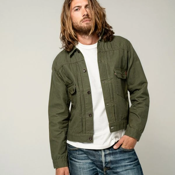 Our interpretation of the classic ‘Type II’ jacket, made from 9oz paraffin coated Oxford cloth. Slightly longer in the body and less boxy than the original Levis cut, the fabric used here is very lightweight and breathable, with a light coating of paraffin to increase durability and improve hand feel. Finished with traditional knife pleats and a rear belt cinch, this is an ideal jacket for the warmer months, combining vintage styling with a more contemporary fit.