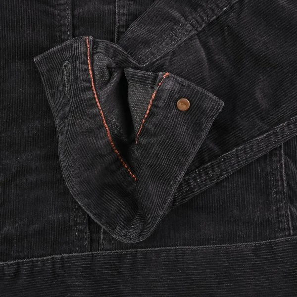 Our interpretation of a Type III, modified with a slightly longer body than the original Levi’s version and with the addition of side pockets. Made in 14 wale black corduroy. If you don’t want to sport a Texas Tuxedo, here’s the ideal jacket to team with your jeans.