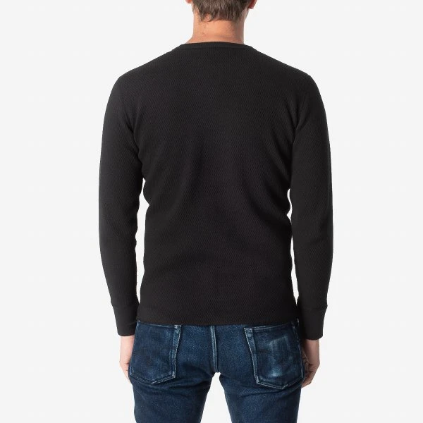 This crew neck thermal sweater is constructed using a heavyweight waffle knit 100% cotton fabric that is incredibly soft on both faces. Finished with a ribbed collar and cuffs with four-needle flatseam construction throughout.Â