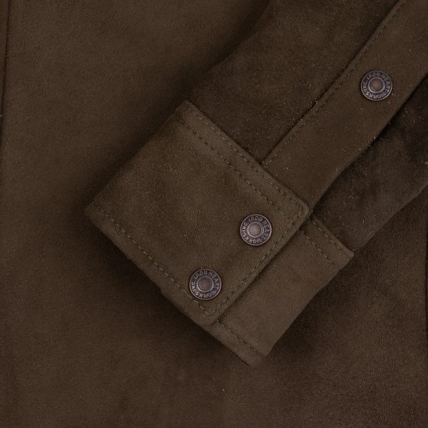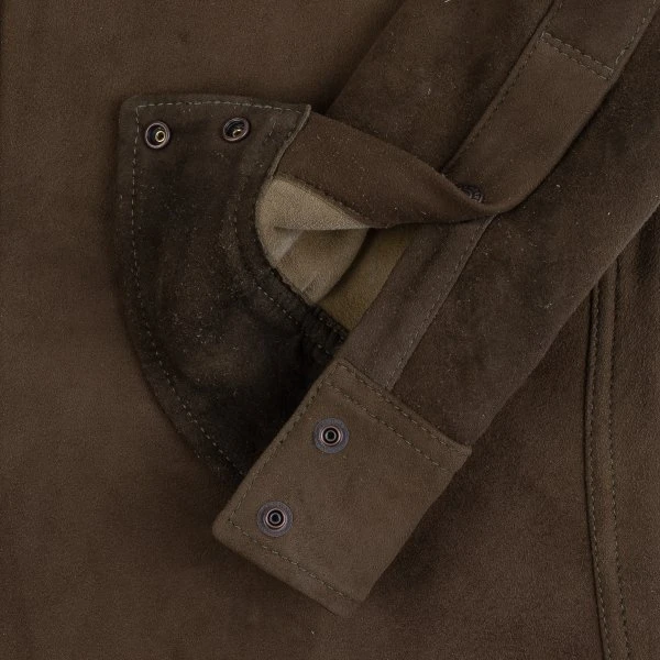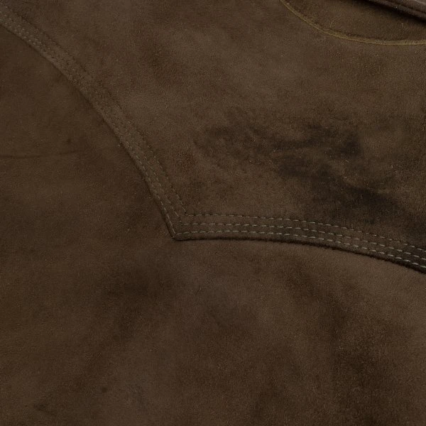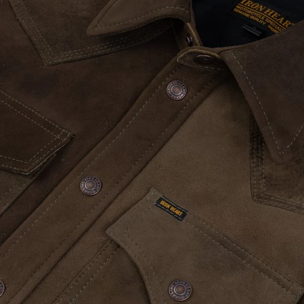 The leather used on this shirt is made of hides from deers living in the woods and mountains of Germany and Austria. They are not kept as livestock or in barns like cows, they run free through the woods and hills. Many of the hides will show scars which are a byproduct of the antlered males fighting with one another during the rutting season.