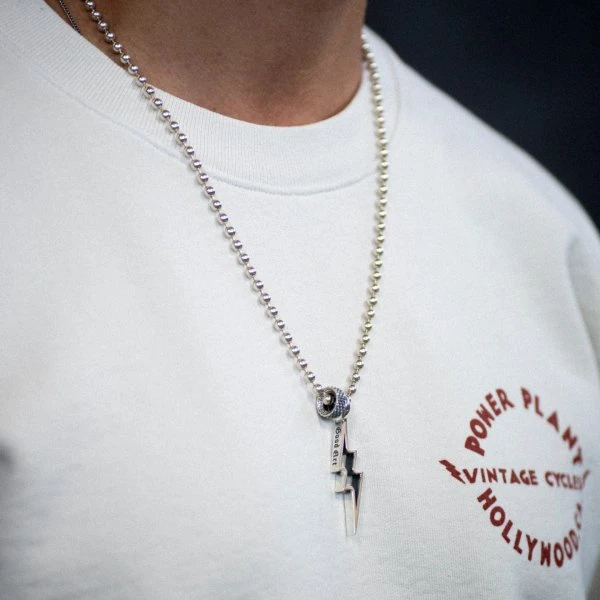 Solid cast .925 sterling silver Shazam! lightning bolt outline pendant with fixed bail and GOOD ART HLYWD hallmark. Each GOOD ART HLYWD piece is dipped in sulphuric acid before they are hand-burnished, creating an understated blackened contrast against the impeccably polished highlights.