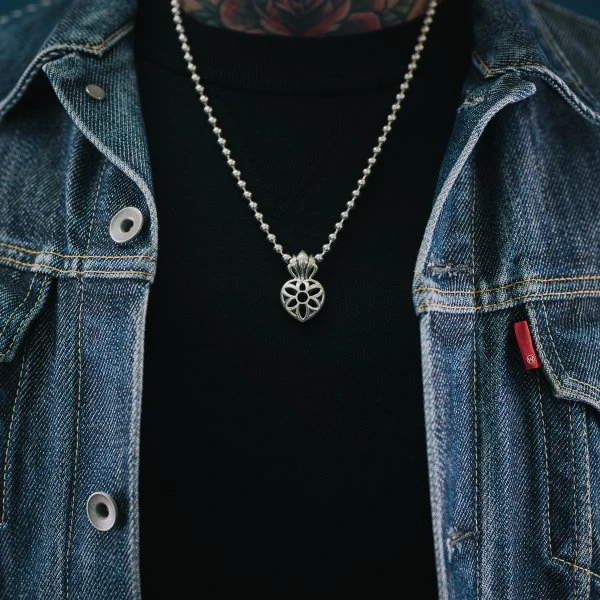 Solid cast .925 sterling silver double-sided pendant with a hidden fixed bail and GOOD ART HLYWD hallmark. Each GOOD ART HLYWD piece is dipped in sulphuric acid before they are hand-burnished, creating an understated blackened contrast against the impeccably polished highlights.