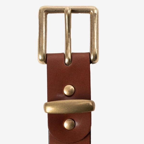 A heavy-duty cowhide belt made using Mishiba crop by Tochigi Leathers, arguably one of the best tanneries in Japan. Complete with a solid brass buckle, these belts are the real deal.