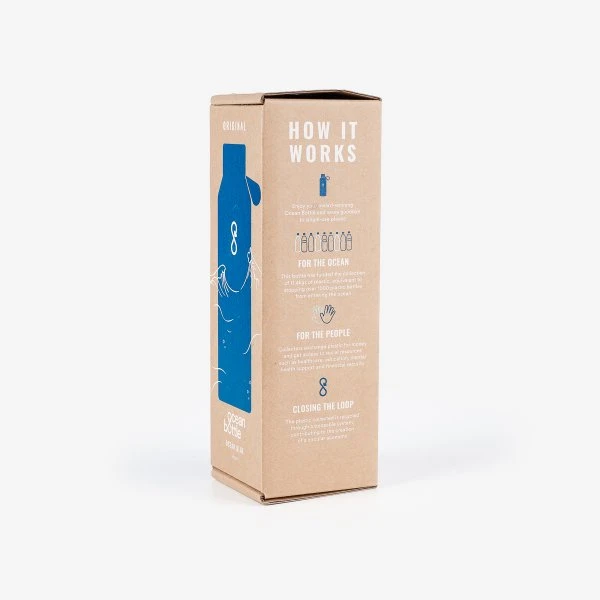 - Every sale funds the collection of 25 lbs of ocean-bound plastics, with more collected with each refill logged on the Ocean Bottle app