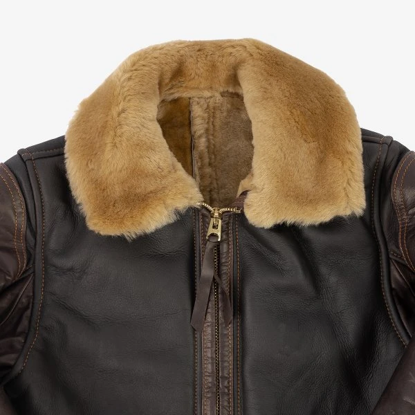 - 18mm brown seal shearling sheepskin flying jacket with ginger fleece lining