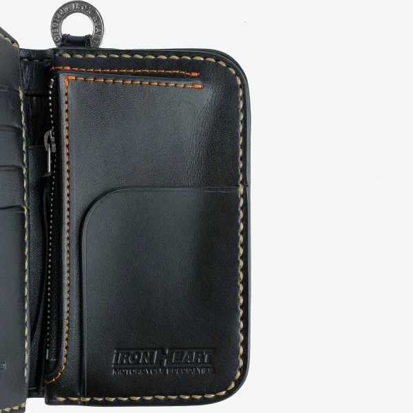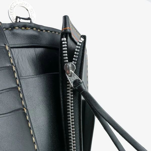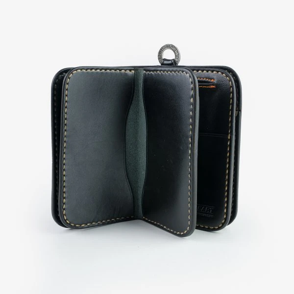 This mid wallet is constructed using shell cordovan and hand-sewn by the ever-capable hands at Calf Japan. It features an array of pockets and zipped storage for your cards and cash along with a solid sliver to secure it to a wallet chain.