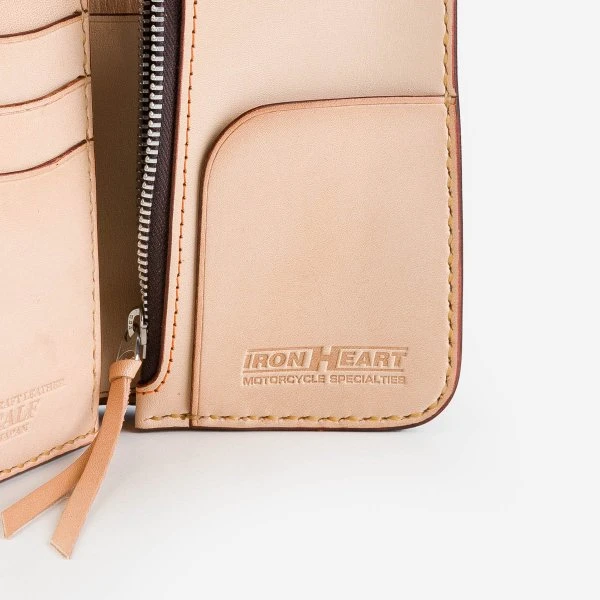 This mid wallet is constructed using shell cordovan and hand-sewn by the ever-capable hands at Calf Japan. It features an array of pockets and zipped storage for your cards and cash along with a solid silver ring to secure it to a wallet chain.