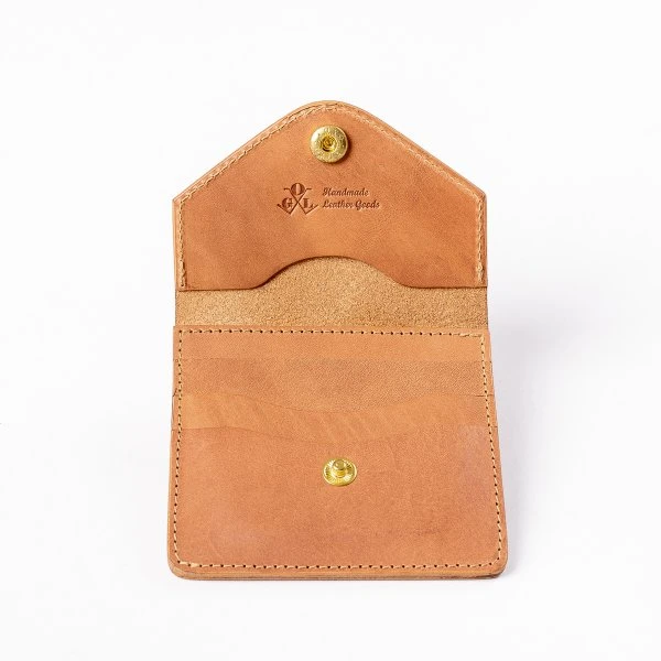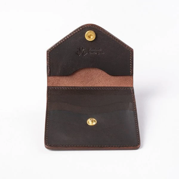 Handmade by our good friends Obbi Good Label in Singapore, this leather card holder has been designed to offer a slimline profile with a versatile array of storage options. Crafted from full-grain Japanese Tochigi vegetable-tanned cowhide leather, features include two hand-carved card slots, one back slot, one stack slot and one folded bill slot – finished with hand-burnished edging and a snap fastening.